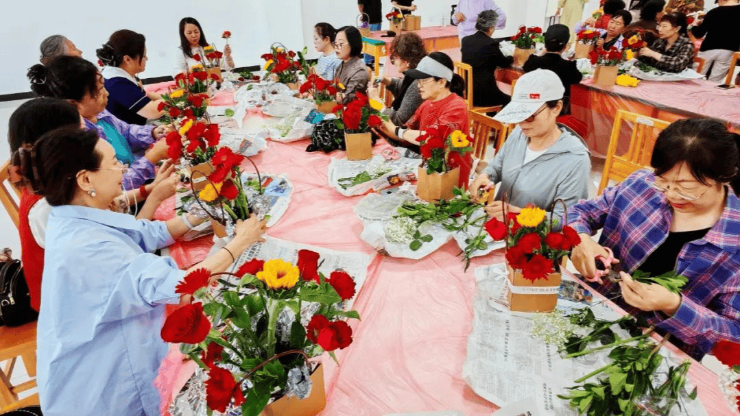 “退休后就爱摆弄花草,今天能和姐妹们一起学插花,感觉自己又年轻啦!”退休干部王阿姨满脸笑意,精心挑选了红色玫瑰和粉色康乃馨,恰似她热烈又细腻的生活态度。而退休教师李阿姨则小心翼翼地将一支向日葵插入花泥:“女儿总说我以前严厉,工作后相处也少了。这束花,我想告诉她,妈妈一直惦记着她。”