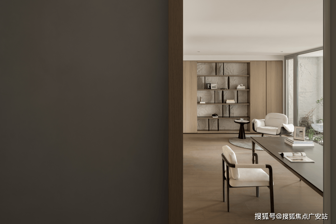 在视觉统一的图景前,窥见多层透景,点缀黑白分明的大理石纹理,深化木饰面的自然性,演绎主次协调的气韵。