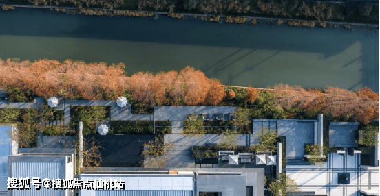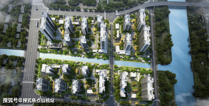 为居者创建了这样一幅舒缓惬意的水岸悦然图景,春申塘、西马屯泾两大天然水系环绕,社区外营造了滨水活力轴和烟火生活轴的十字生态,让整个社区宛若一座水上的自然岛屿。