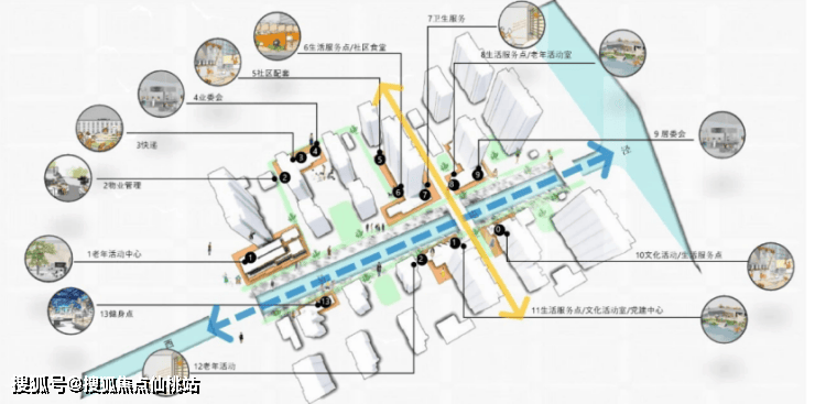 社区配套上,整个社区约3500方生活配套沿河而设,有意引入以下生活配套业态:咖啡简餐、便利店、水果店、早餐店、生鲜零售、健身瑜伽、洗衣店、药店等。在“边界消融”中,主动引导业主参与街区生活。同时,“屋檐之下,自然之家”的概念将架空层打造成“家外之家”的生活延伸,实现生活与自然的无缝衔接。还在社区10号楼和4号楼下,建立了户内户外联合,人与人情感链接的“阳光会所”