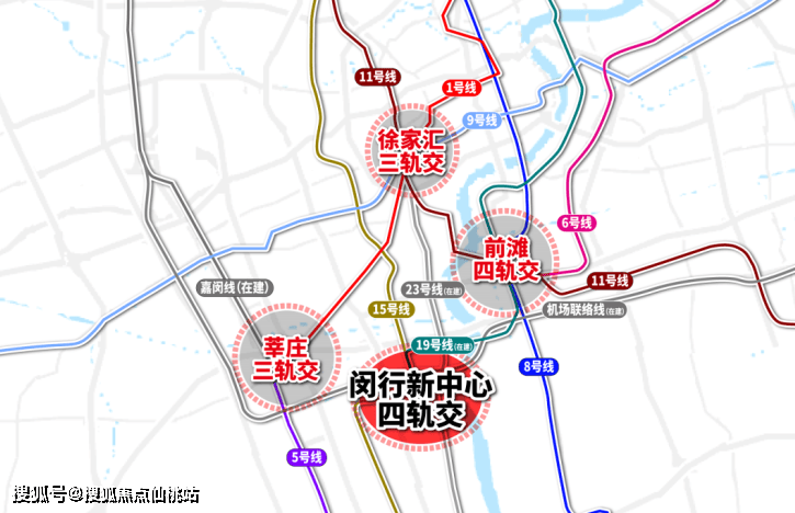 (建设中)这条轨交也能与19号线换乘,未来将连通徐汇滨江,直达上海体育场;可以看到,这四条轨交为闵行新中心串联起了2大机场、3大高铁站、多个千亿产业区,还有徐家汇、徐汇滨江以及前滩这样的城市CBD。