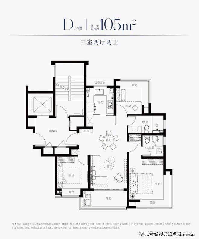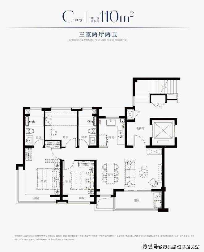 标准的3房2卫飞机户型,三开间朝南且南北通透的设计,让室内容纳更多的采光与通风;全卧室飘窗设计,有效延申室内空间,增添休闲空间功能;U形厨房设计,厨房联通餐厅、客厅及阳台一体化设计,空间感十足!