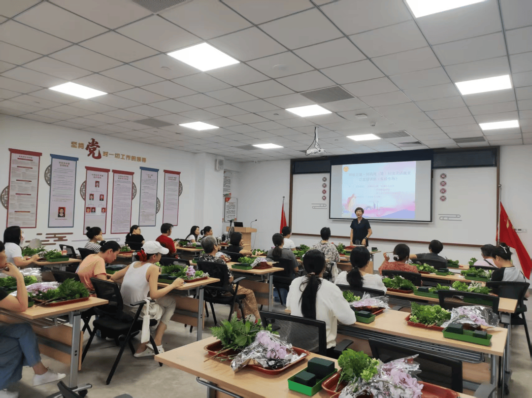 此次培训吸引了众多社区女性踊跃参与,大家热情洋溢,积极投入到花艺创作的实践中。在黄军芳的耐心指导下,学员们从最初的生疏逐渐变得娴熟,一件件独具匠心的玄关花艺作品在她们手中悄然诞生。有的作品呈现出清新淡雅的风格,仿佛让人置身于宁静的山林之间;有的作品则色彩缤纷,充满活力,给人带来愉悦的视觉享受。
