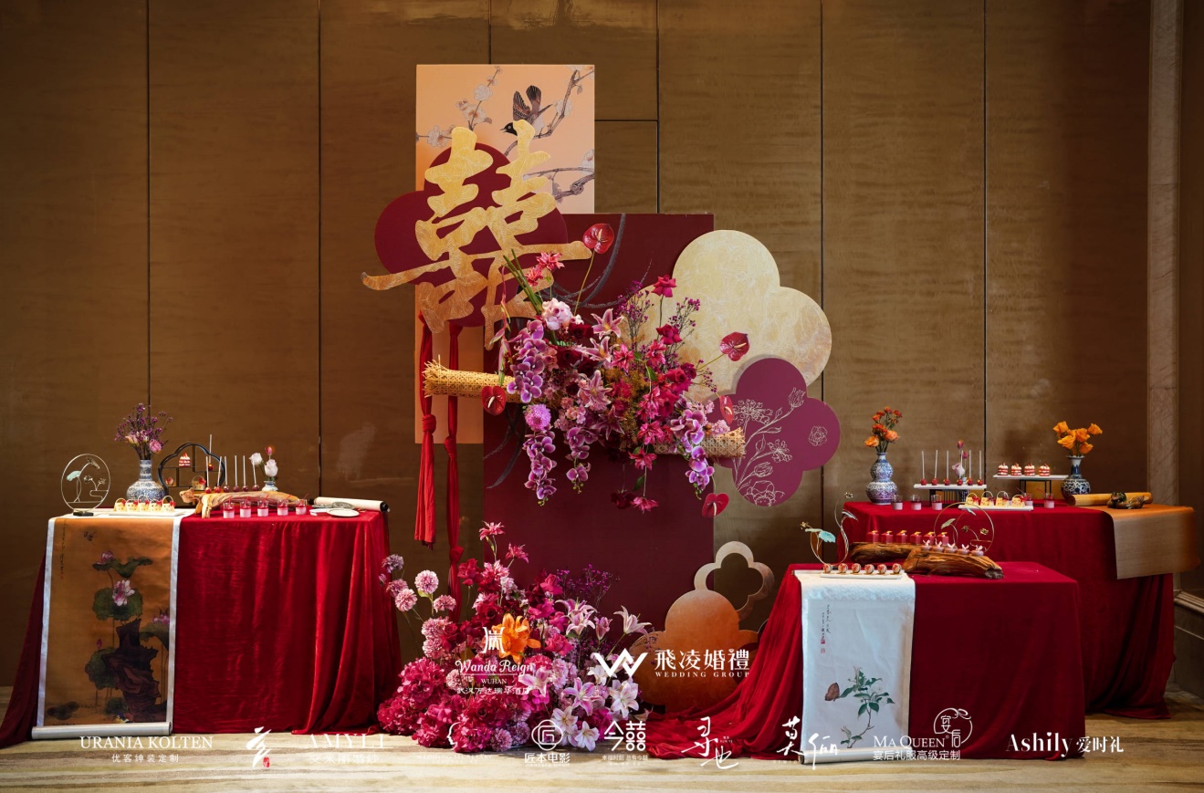 武汉万达瑞华酒店以1500平的无柱宴会厅、定制化餐饮服务,给新人打造“奢华与专属”的服务;而飞凌婚礼则凭借对中式美学的创新表达,让“千年仪轨”跳出刻板印象,以当代年轻人喜爱的方式重新呈现。以“中式礼俗 + 现代婚尚”的理念融合将“有文化、有仪式、有质感”的婚典带到现场。