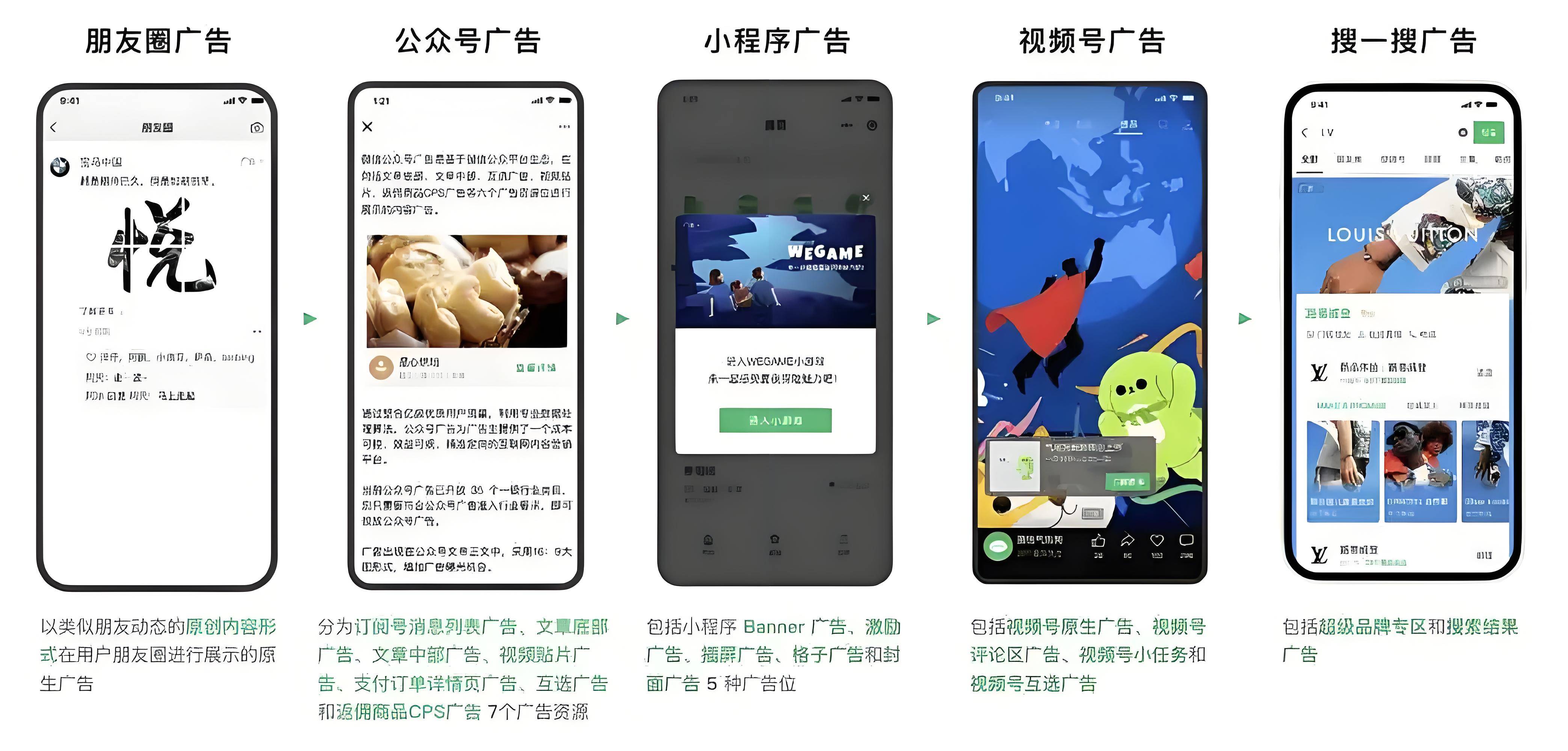 朋友圈首条评论广告:广告主可以用官方身份在广告下发布第一条评论,对广告进行补充说明或引导,并且可以置顶。