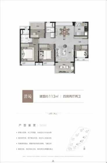 :做到南向四开间,全屋采光充足,每个房间都能享受到阳光的照耀。空间尺度宽松,双厅相连,活动空间充足,适合改善型家庭居住,总价约 315 万起,带来高品质的居住体验。