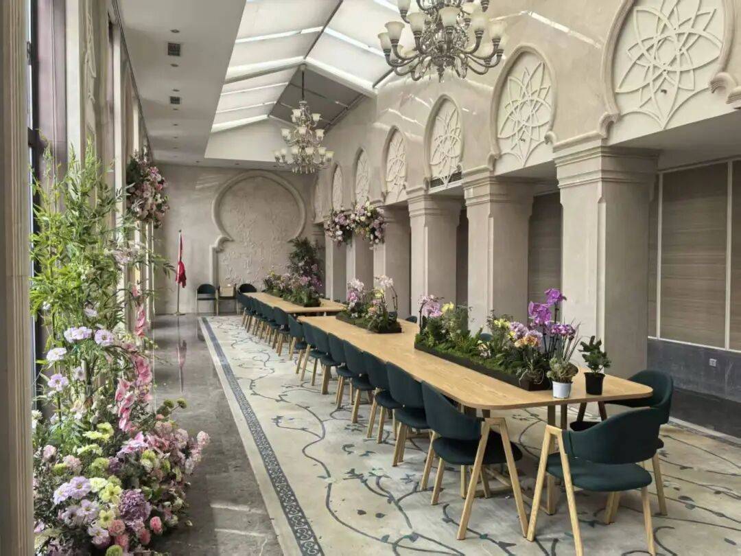 作为活动的文化高地,“四雅闲庭”专注于传播中国传统花事文化。入口处布置条案供桌与雅致摆件,营造出静谧典雅的玄关景致。公共区域则通过新中式架构花艺场景,进一步烘托场域内的文化氛围。现场将重现“宋人四雅”的生活美学。活动期间,将有专人定时进行焚香、点茶等文化活动表演,让游客在赏名花、闻馨香、品茶汤、观画作中,沉浸式体验古人的风雅意趣。