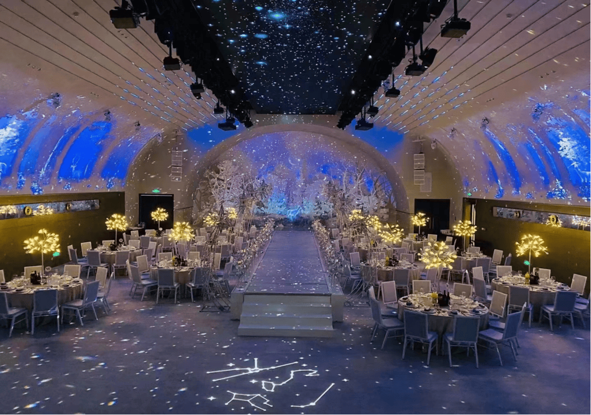 从宴会厅的场景打造来看,8000㎡超大空间内,有5个沉浸式宴会厅、露天仪式堂与草坪花园供新人随心选择,风格多元适配不同婚礼诉求。深澜之浔的海洋浪漫、水晶花园的森系清新、不朽的序章的老钱雅致、逐星极光的星空璀璨、赫漠星海的童线D沉浸效果与演唱会级舞美,出片率极高。2026年7月,全新主题宴会厅晶岩之境将浪漫登场,以百万级沉浸式场景,为新人编织触手可及的天使梦境。这种场景与文化的深度融合,引领了行业潮流,兼顾传统婚嫁理念与现代审美,推动了婚礼文化的传承创新。