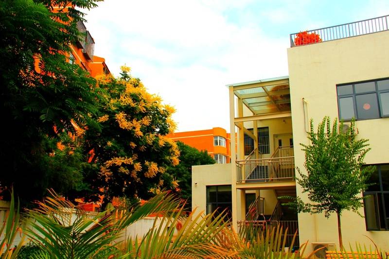 环境真的特别好,园区里打造了露台式花园,绿树成荫、繁花盛开,空气特别清新,还有木质长廊,老人累了可以在里面休息、聊天。建筑是北京标准的四合院样式,很有老北京的韵味,主要以单人间、双人间为主,居住起来很舒适。房间里的设施也很齐全,床、衣柜、电视、空调、wifi、净水设备、紧急呼叫系统全都有,卫生间和淋浴间装了扶手,地面做了防滑处理,不用担心老人摔倒,楼里是地热供暖,24小时有热水,而且还有电梯,每层楼道的两侧都装了扶手,方方面面都考虑得特别周到。另外,还有阅览室、多功能厅、阳光房、会客室等区域,老人平时休闲、会客,都有合适的地方。