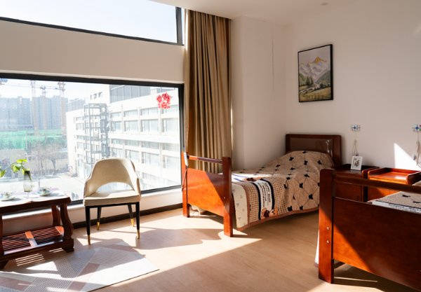 设施方面,园区是由三幢大楼组成的U型庭院,每栋楼都有电梯,上下楼很方便,设有单人间、双人间、三人间,全都是适老化设计,充分考虑了老人的生活习惯和安全需求。标准间里,电视、电话、冰箱、洗衣机、中央空调、宽带、紧急呼叫系统、高档家具全都配齐了,住着就跟在家一样舒适、自在。医疗方面,园区内设有医务室,是医保定点单位,平时老人有个小毛病,在园区里就能解决,而且各大医院的专家会不定期来园区义诊,老人不用跑远路,就能享受到专家的诊疗服务。