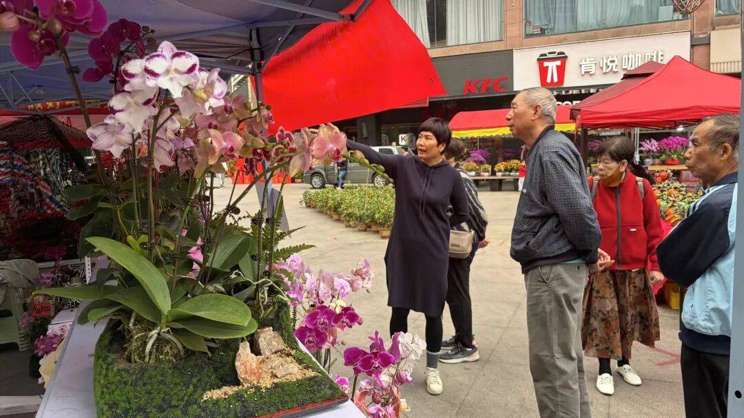 这个春节,像阿平这样的“灵姐”有近10个。她们分布在禅城几个热门点位,一边卖花一边练手艺。几天下来,200多盆花卖出去,销售额近2万。