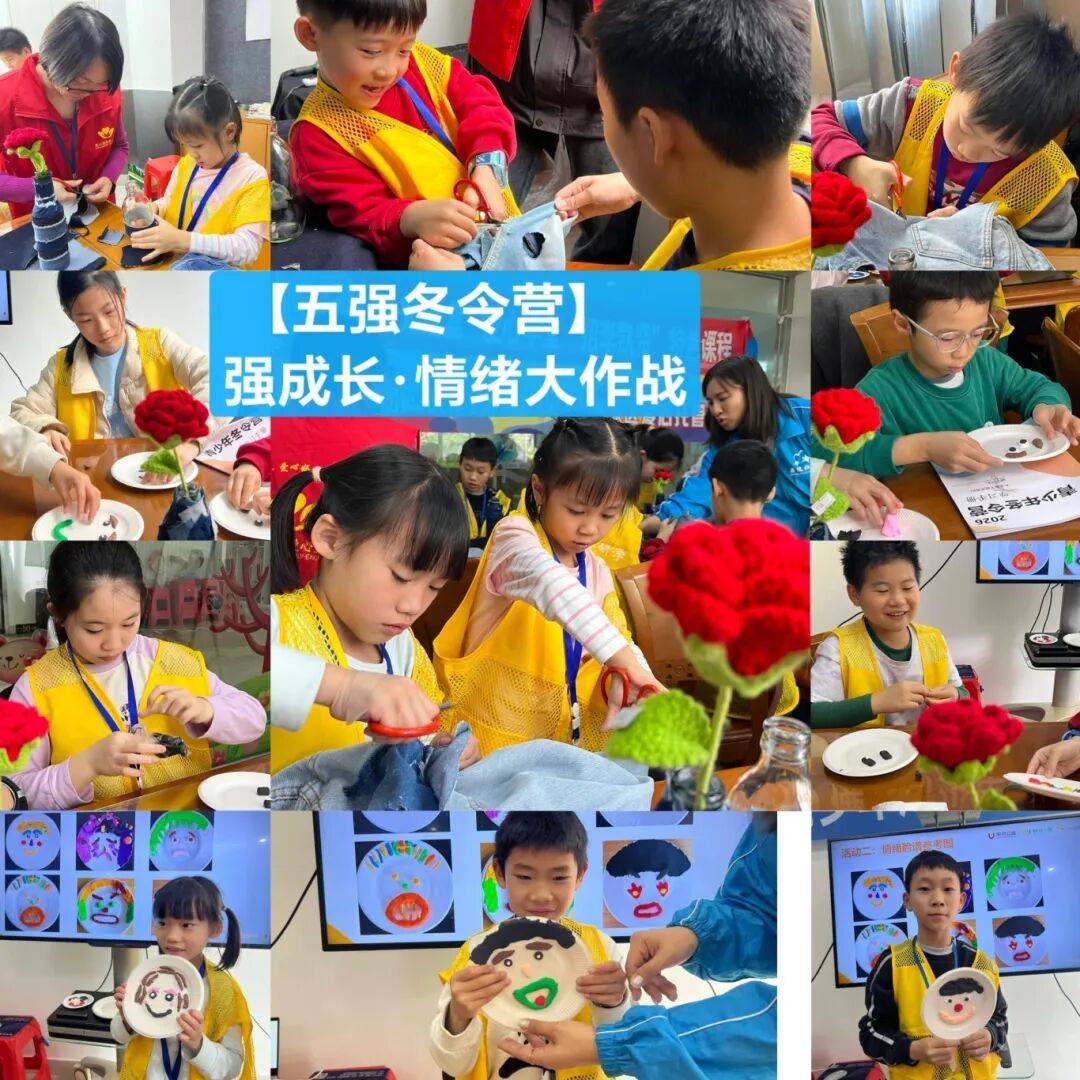 五强归一心,成长皆有方。冬令营还引入团区委《情绪管理》课程,孩子们绘制情绪脸、制作情绪瓶,学会做情绪的小主人;感恩教育贯穿始终,在“招李凯贤·爱心学堂”支持下,孩子们每日为父母端水、动手制作梅花摆件,更从招应璋先生的大爱善举中懂得:金钱可化善意,温暖当传他人。